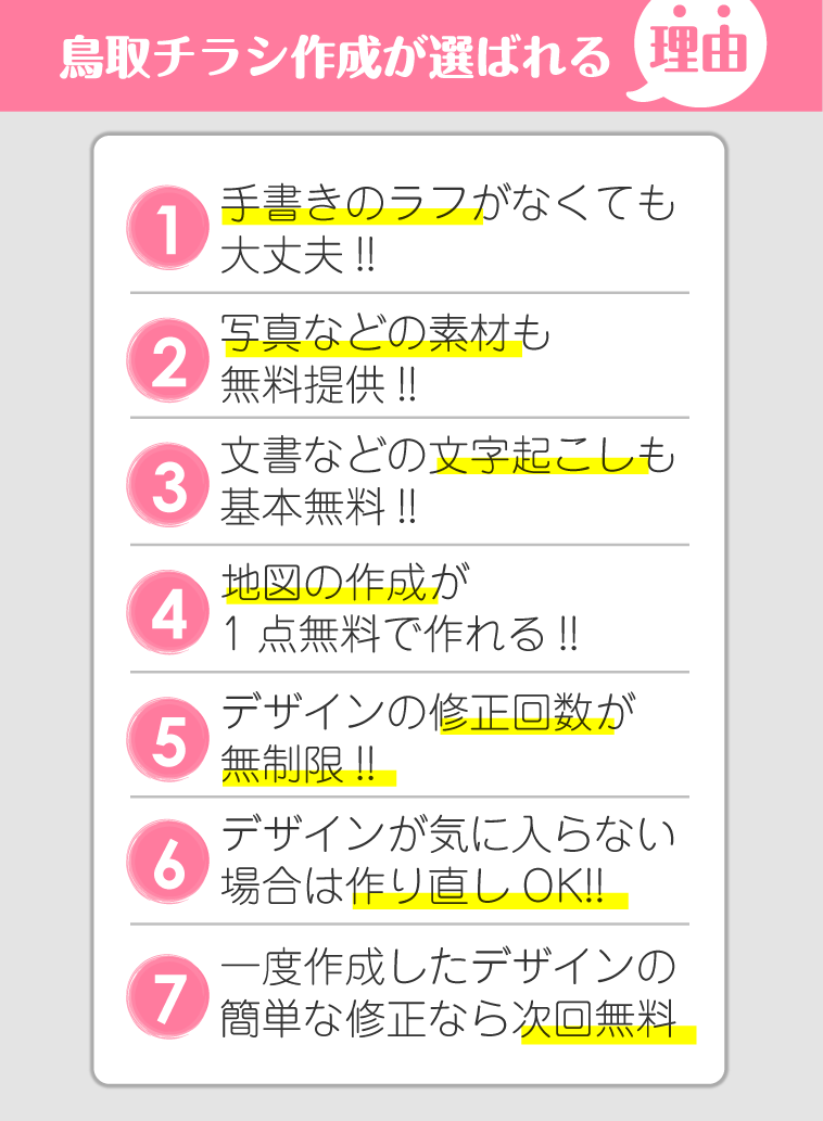 鳥取チラシ作成のチラシデザイン、チラシ作成、チラシ制作、チラシ印刷の強み